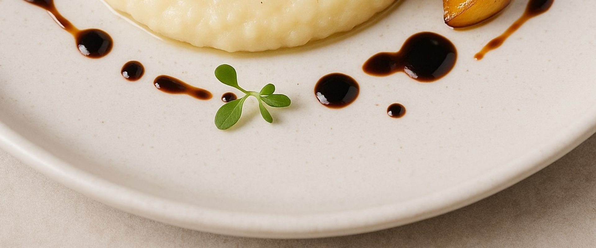 En el centro del plato, coloca una base de puré de apionabo con una cuchara o manga.