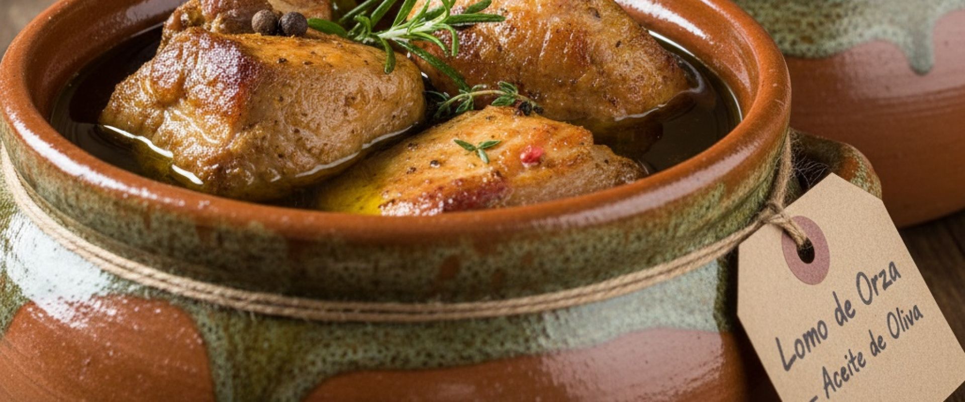 El lomo de orza es una conserva tradicional manchega a base de lomo de cerdo marinado y cocinado, guardado en aceite dentro de una orza de barro para garantizar su conservación y potenciar su sabor.