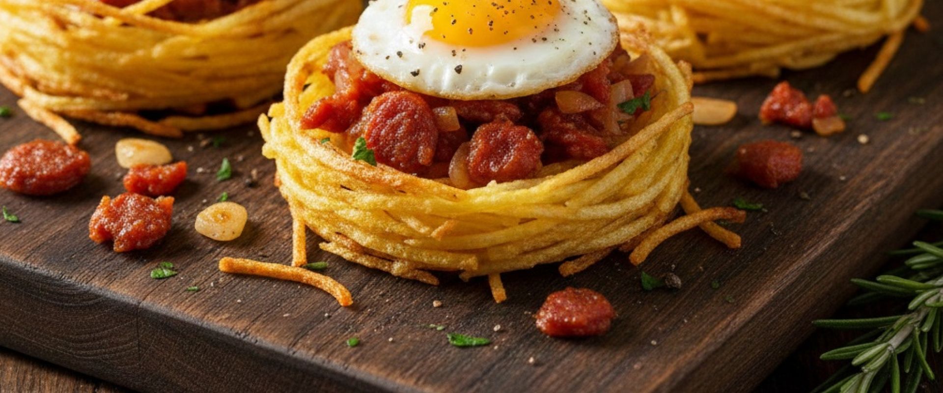 La Receta Estrella de Navidad: Nidos de Patata Crujientes con Chorizo Sarta y Huevo de Codorniz